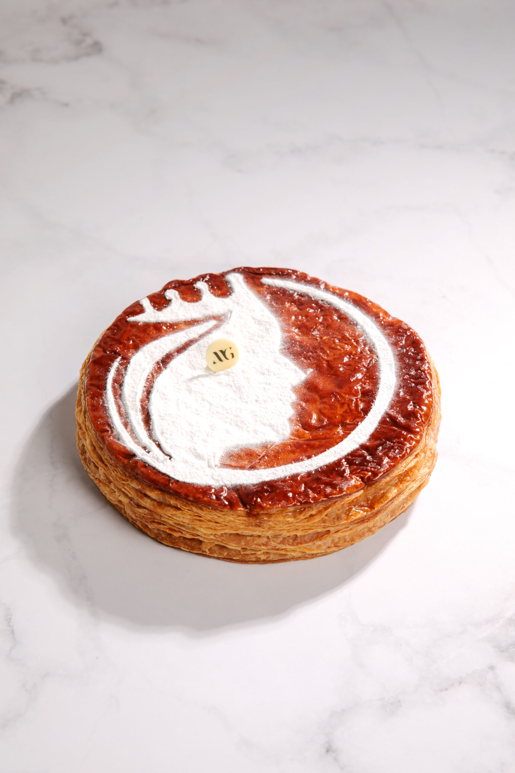 Quoi de plus éphémère qu’une galette des Rois… Attendue pendant toute l’année et dégustée un jour par an ! Avec un bon feuilletage pur beurre et artisanal, une frangipane aux amandes brunes torréfiées, de la vanille de Tahiti et une touche de rhum brun.